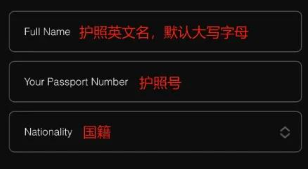 填写相关信息:包括护照上的英文名、护照号及国籍。