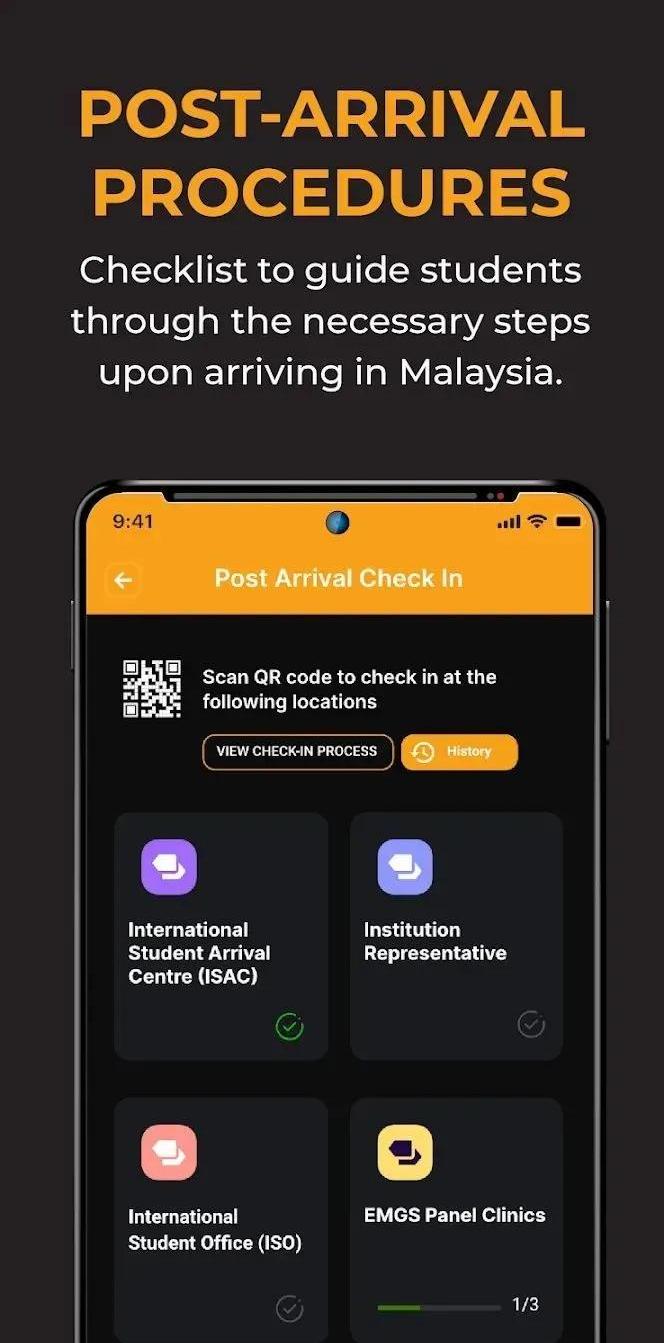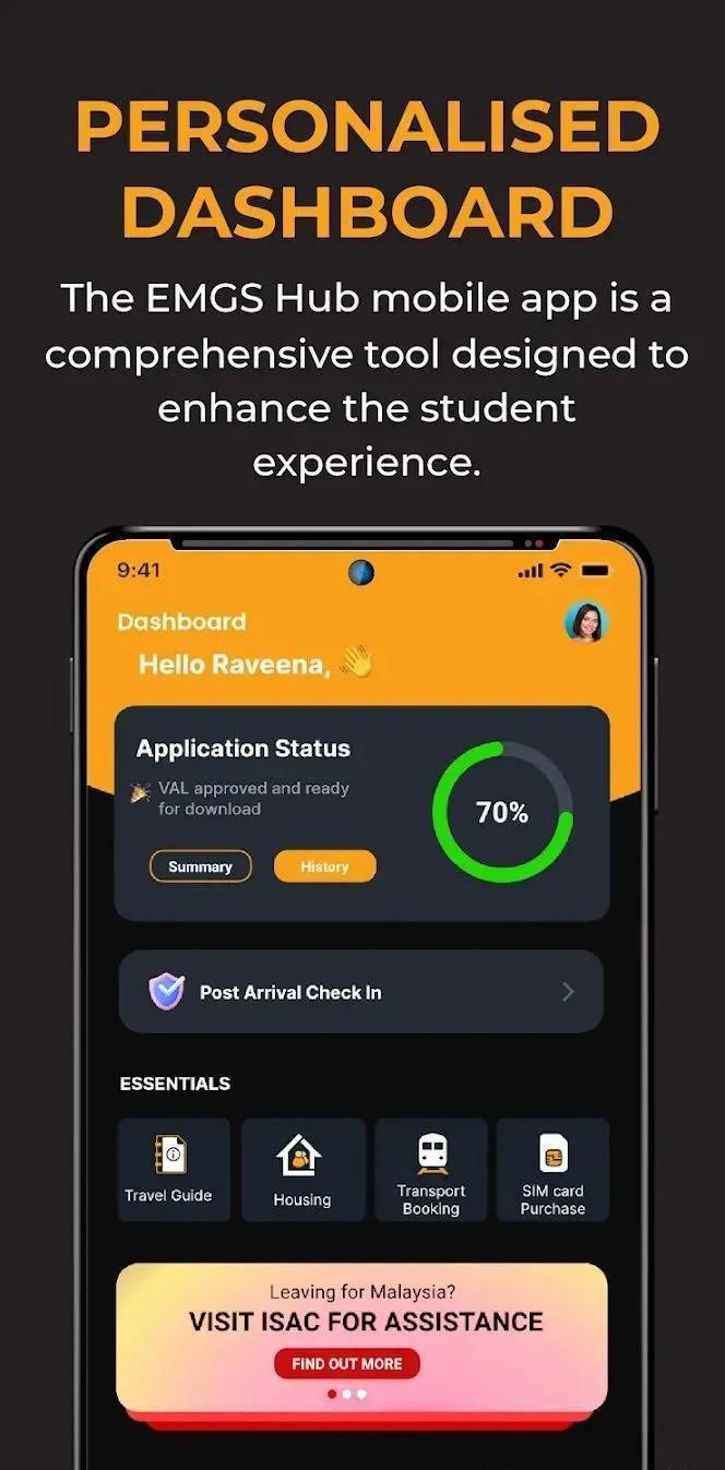 EMGS Hub为计划到马来西亚留学的学生提供完整的解决方案,包括学生体验,社区论坛,详细的课程和教育机构信息,以及流畅的签证申请流程。- 涵盖所有院校、课程、学费及学生签证申请的详细信息;- 提供留学相关的信息如住房、交通、移动设计及行前指导的相关信息;- 实时查询并跟踪签证申请进度;- 通过该应用程序的社区论坛与留学生们联络;- 顺利完成入境后的流程;- 可快速查询并在EMGS合作的诊所登记;- 保存I-kad及保险信息。